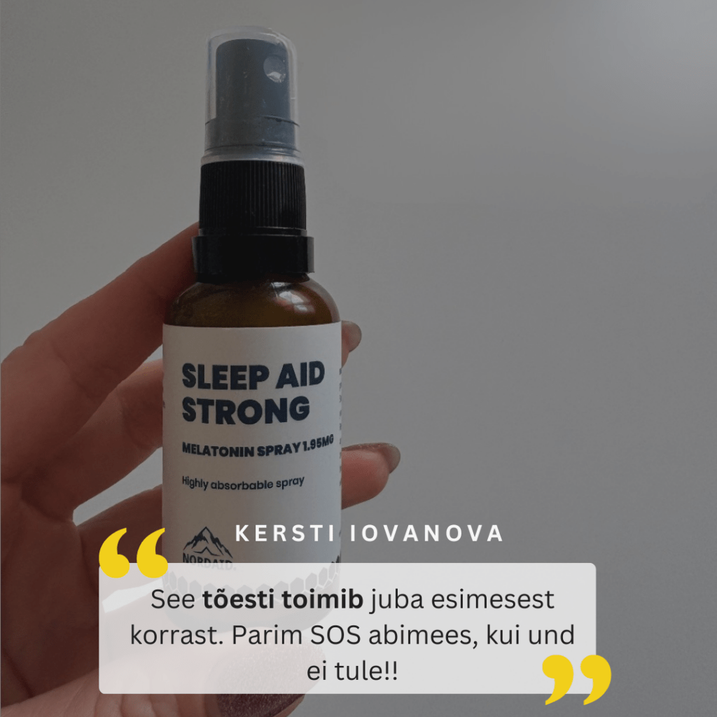 🇪🇪Nordaid Sleep Aid Strong melatonin spray is fast-absorbing and has a pleasant taste. The beneficial effect occurs when one spray of melatonin is consumed just before bedtime. It starts to take effect in just 7 minutes. Shortens the time it takes to fall asleep and alleviates issues related to jet lag.
