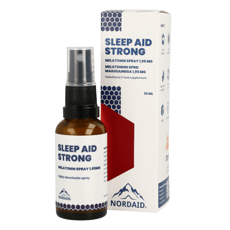 🇪🇪Nordaid Sleep Aid Strong Melatoniini mugav suukaudne sprei on kiire imendumisega ja hea maitsega. Kasulik toime avaldub, kui tarbitakse üks pihustus melatoniini vahetult enne magamaminekut. Hakkab mõjuma juba 7 minuti jooksul.
