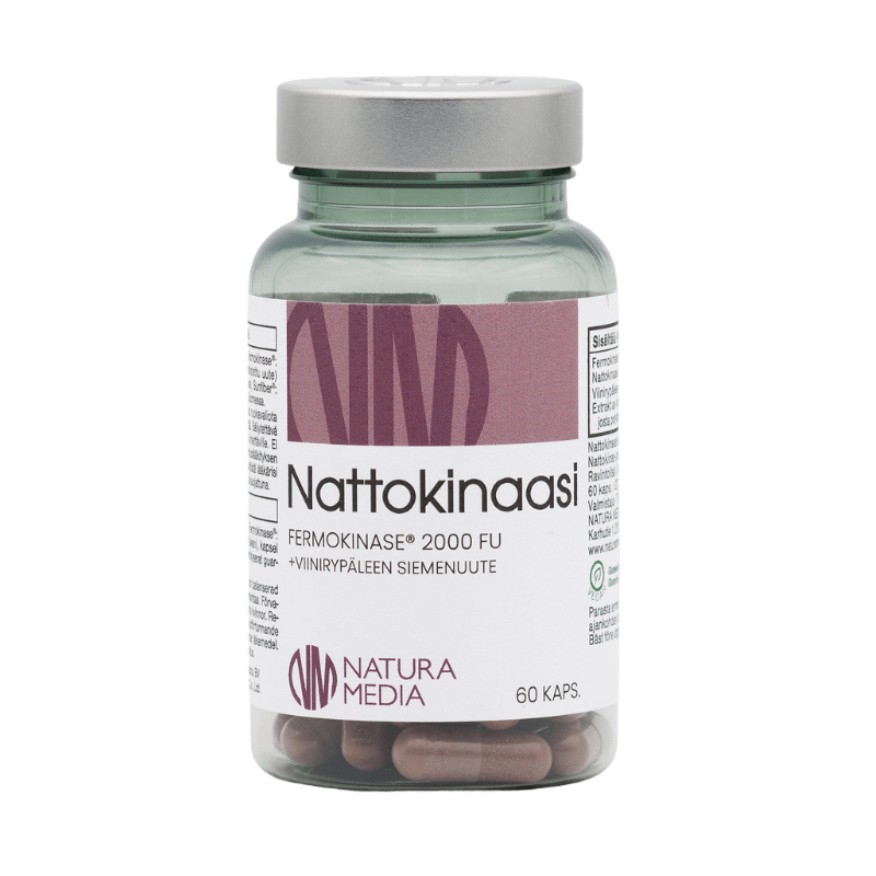 🇫🇮 Natura Media kvaliteetne nattokinaas ja prantsuse viinamarjaseemneekstrakt, mis toetavad veresoonte tervist ja normaalset vererõhku.