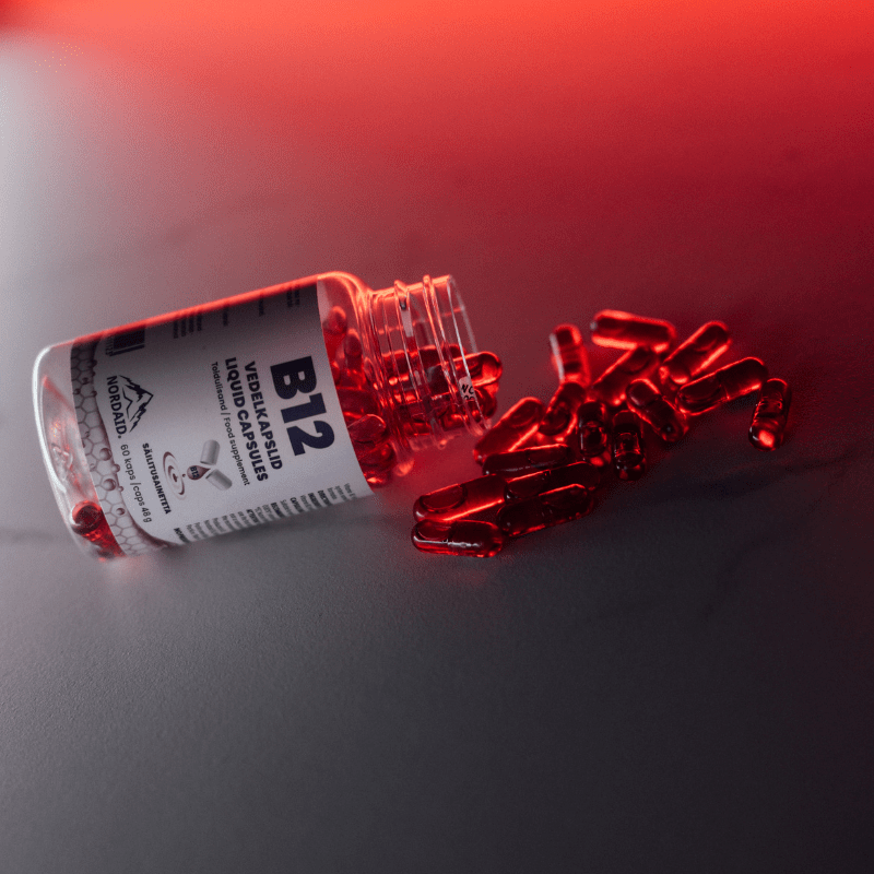 Nordaid vitamiin B12 vedelkapslid. Vedelad koostisosad jõuab vereringesse kiiremini kui tavalised tabletid või pulbrikapslid, tagades tõhusama imendumise.